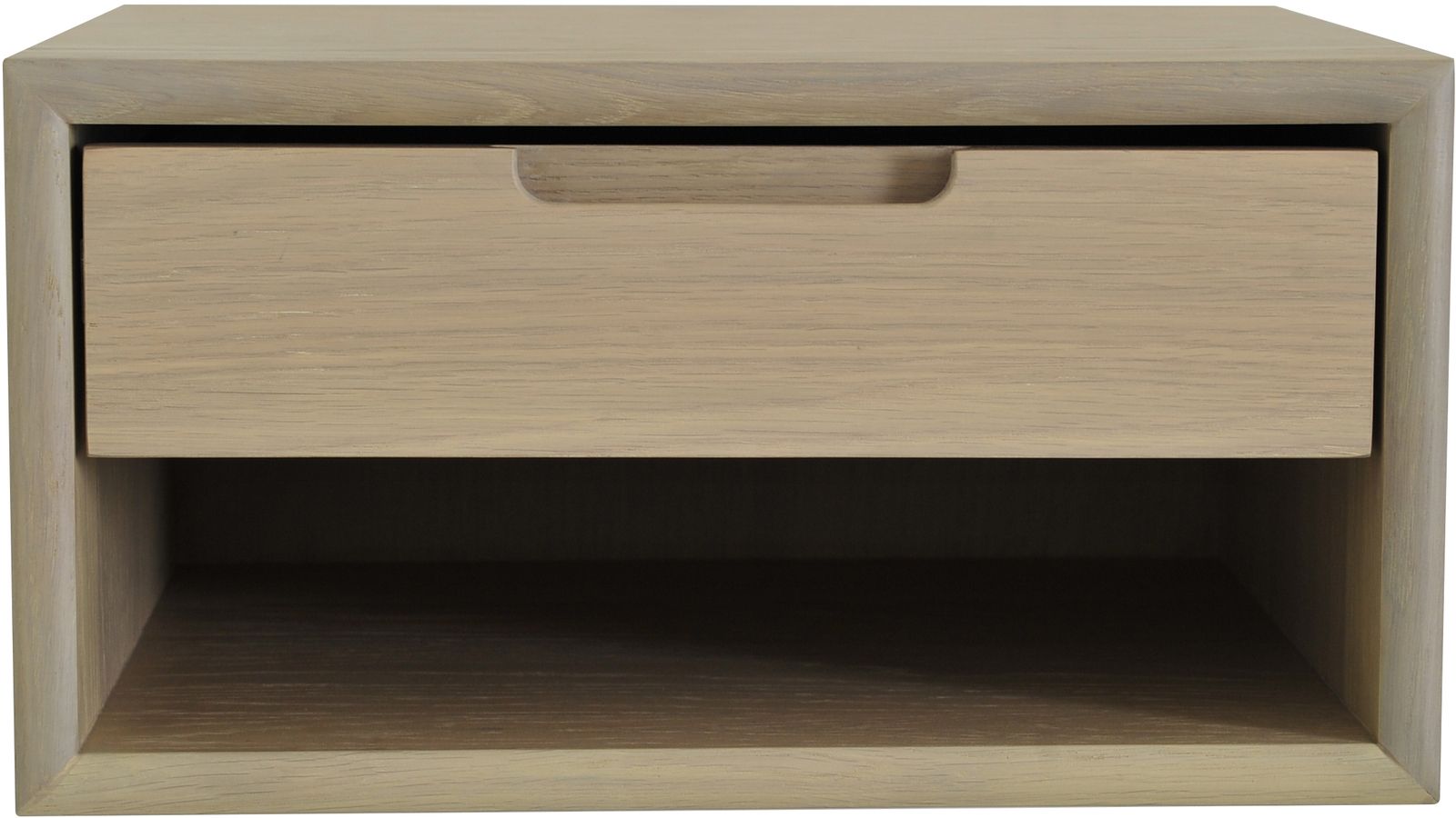 Emma är ett vägghängt sängbord i naturfärgad ekfaner, utrustad med ett fack och en låda. Perfekt att ha bredvid sängen, är nätt och håller bra ordning på dina saker. Finns även i svart ekfaner.