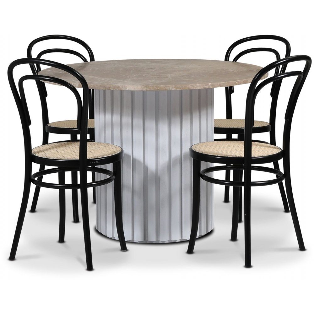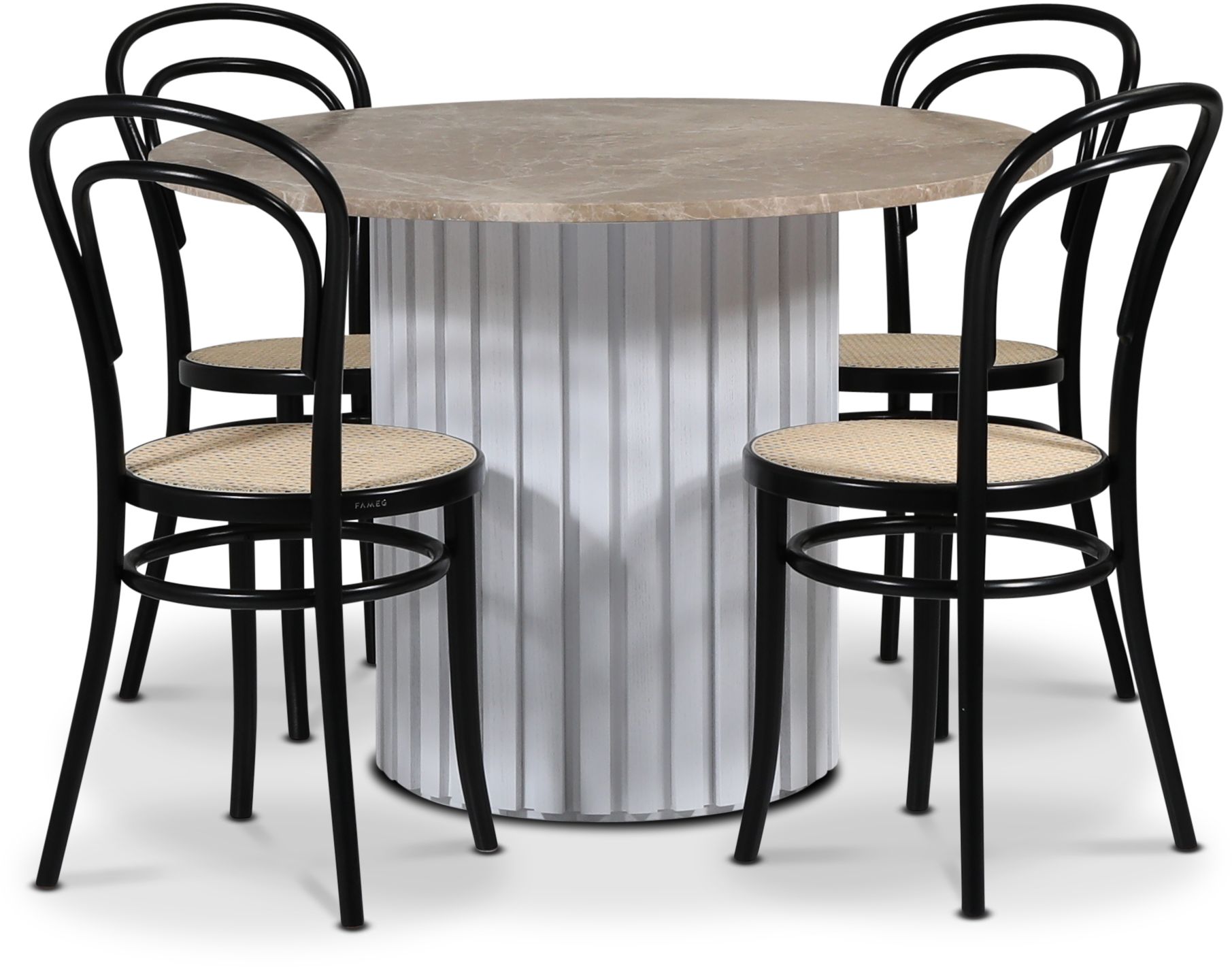 Empire matgrupp Ø105 cm inkl. 4 st Böjträ Stolar No14 - Empradore marmor / Vit lamell träfot