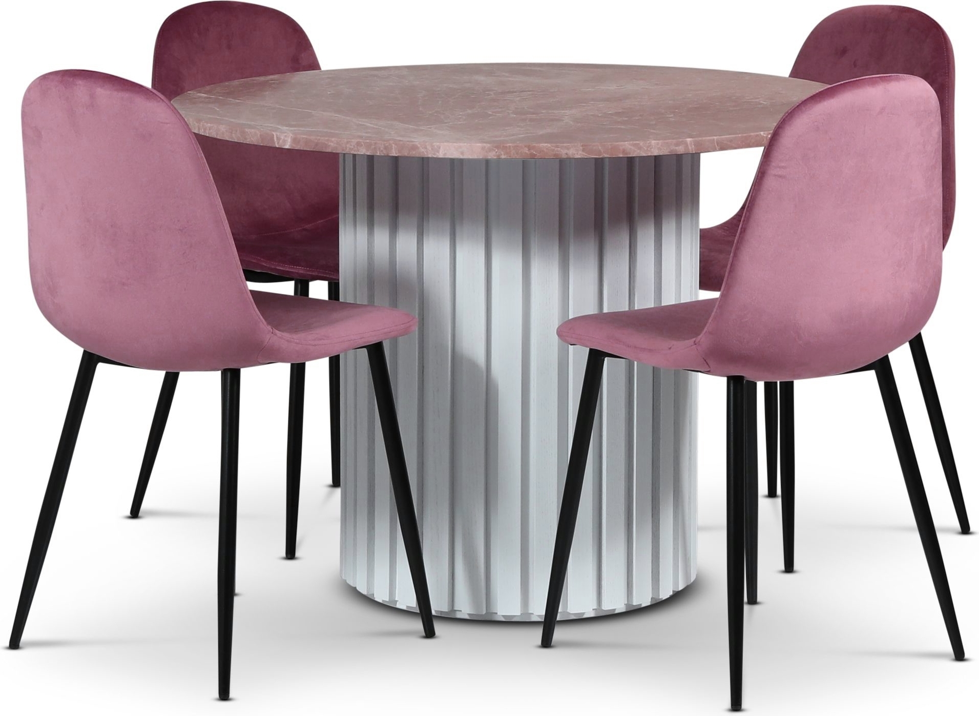 Empire matgrupp Ø105 cm inkl. 4 st Carisma rosa stolar - Empradore marmor / Vit lamell träfot