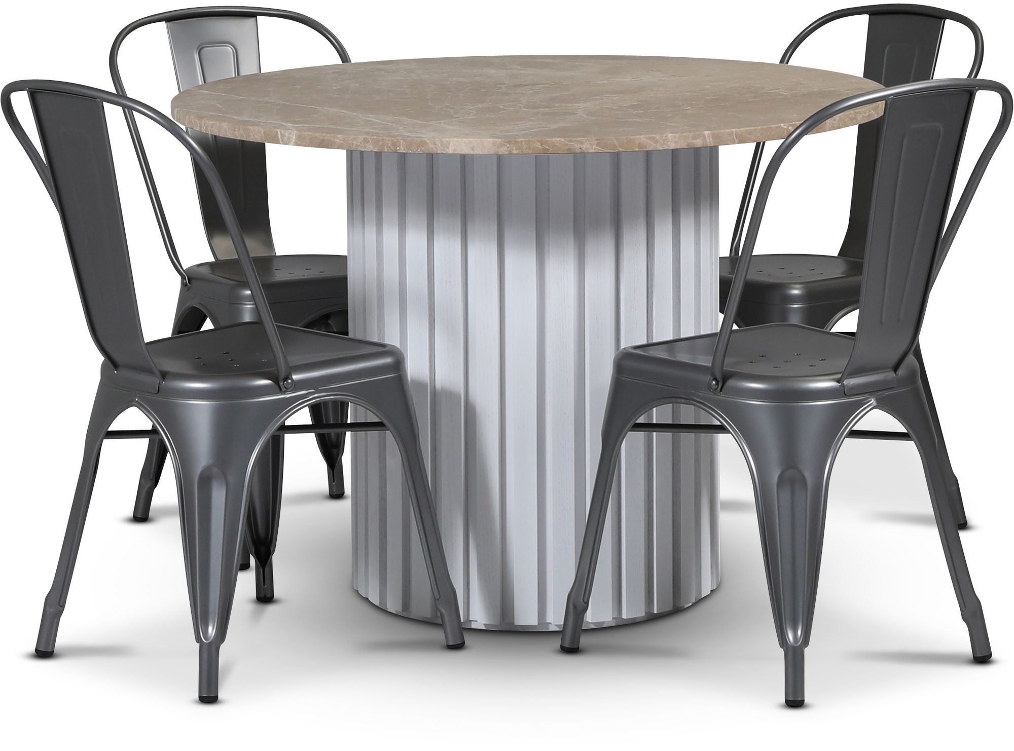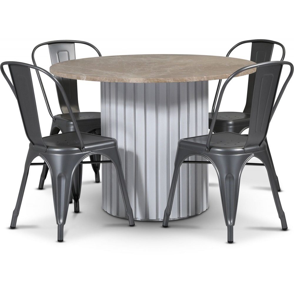 - Empire matgrupp Ø105 cm inkl. 4 st Industry plåtstolar - Empradore marmor / Vit lamell träfot
