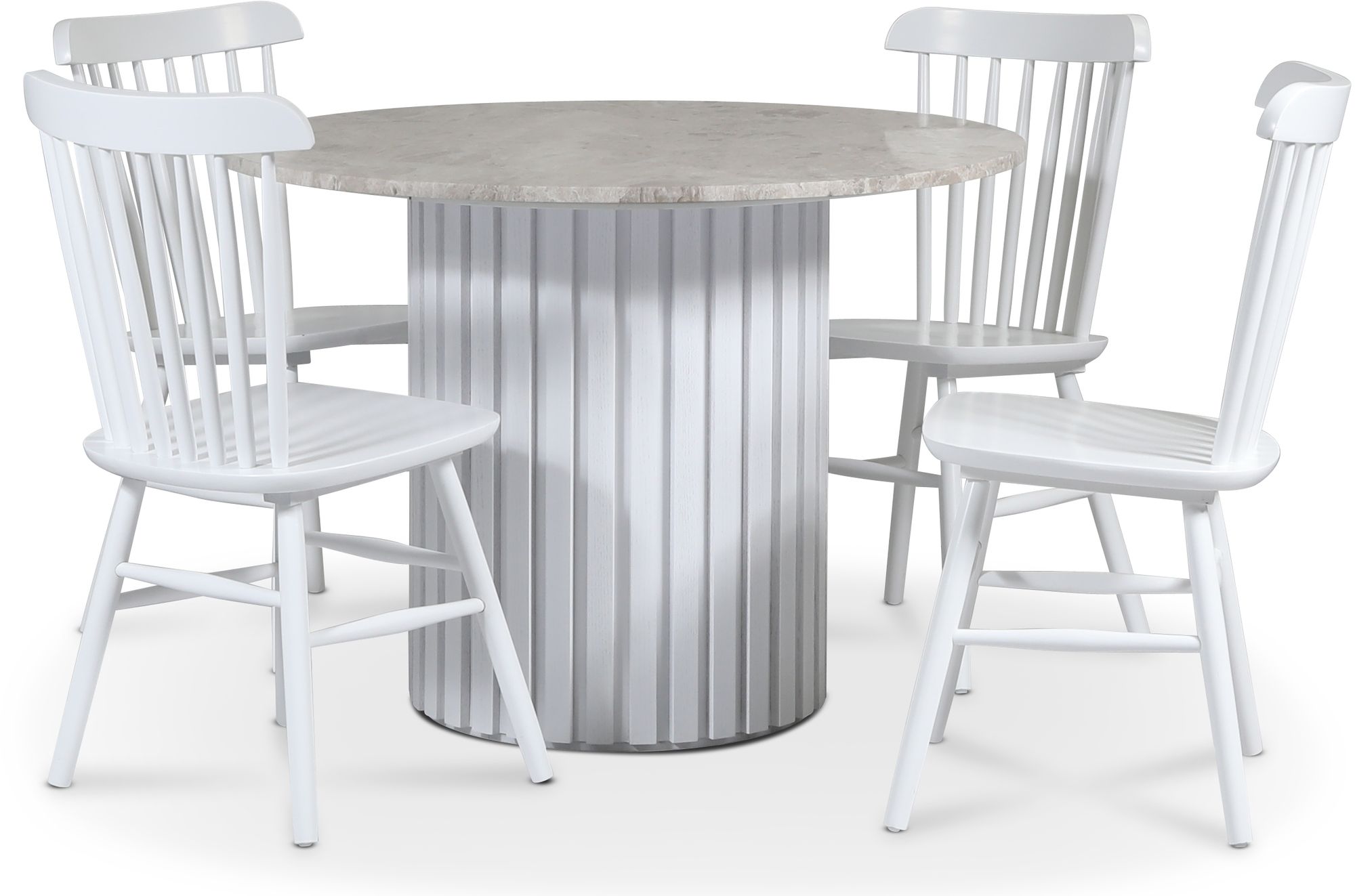 Empire matgrupp Ø105 cm inkl. 4 st Orust vita pinnstolar - Silver Diana marmor / Vit lamell träfot