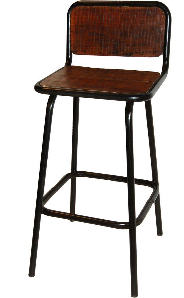 Barstol i en härlig kombination av återvunnet trä och antikbehandlad svart stomme. Varje barstol är unik och kan därför skilja i finish.