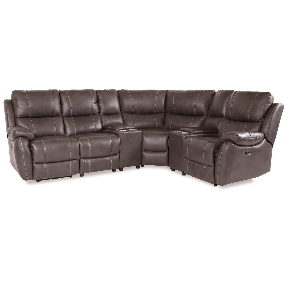 Enjoy recliner-hörnsoffa - 4-sits (el) i Brunt konstskinn (modell V) med två konsoller
