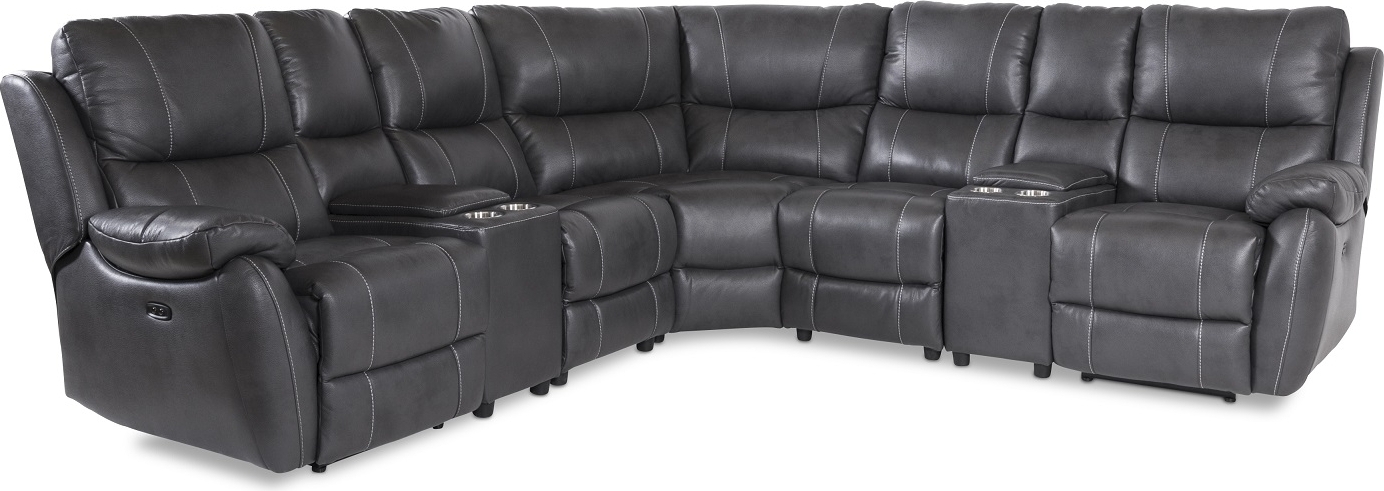 Enjoy recliner-hörnsoffa - 5-sits eldriven i grått konstskinn