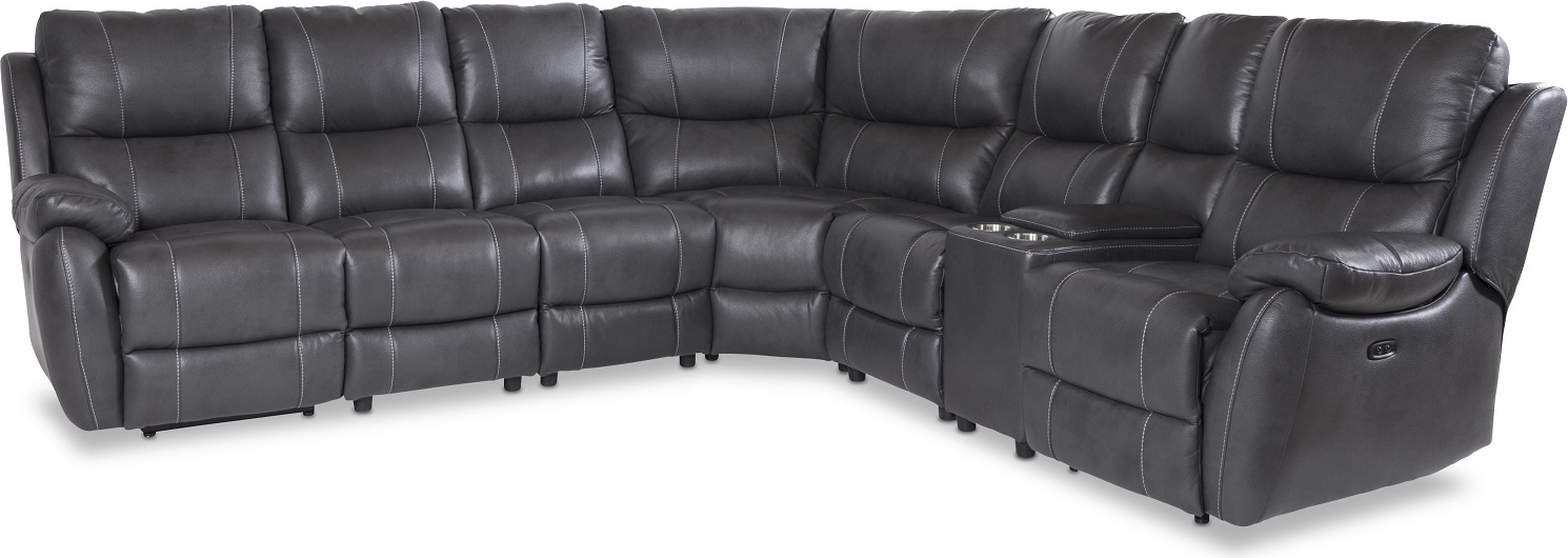 Enjoy recliner-hörnsoffa - 6-sits eldriven i grått konstskinn (modell V)