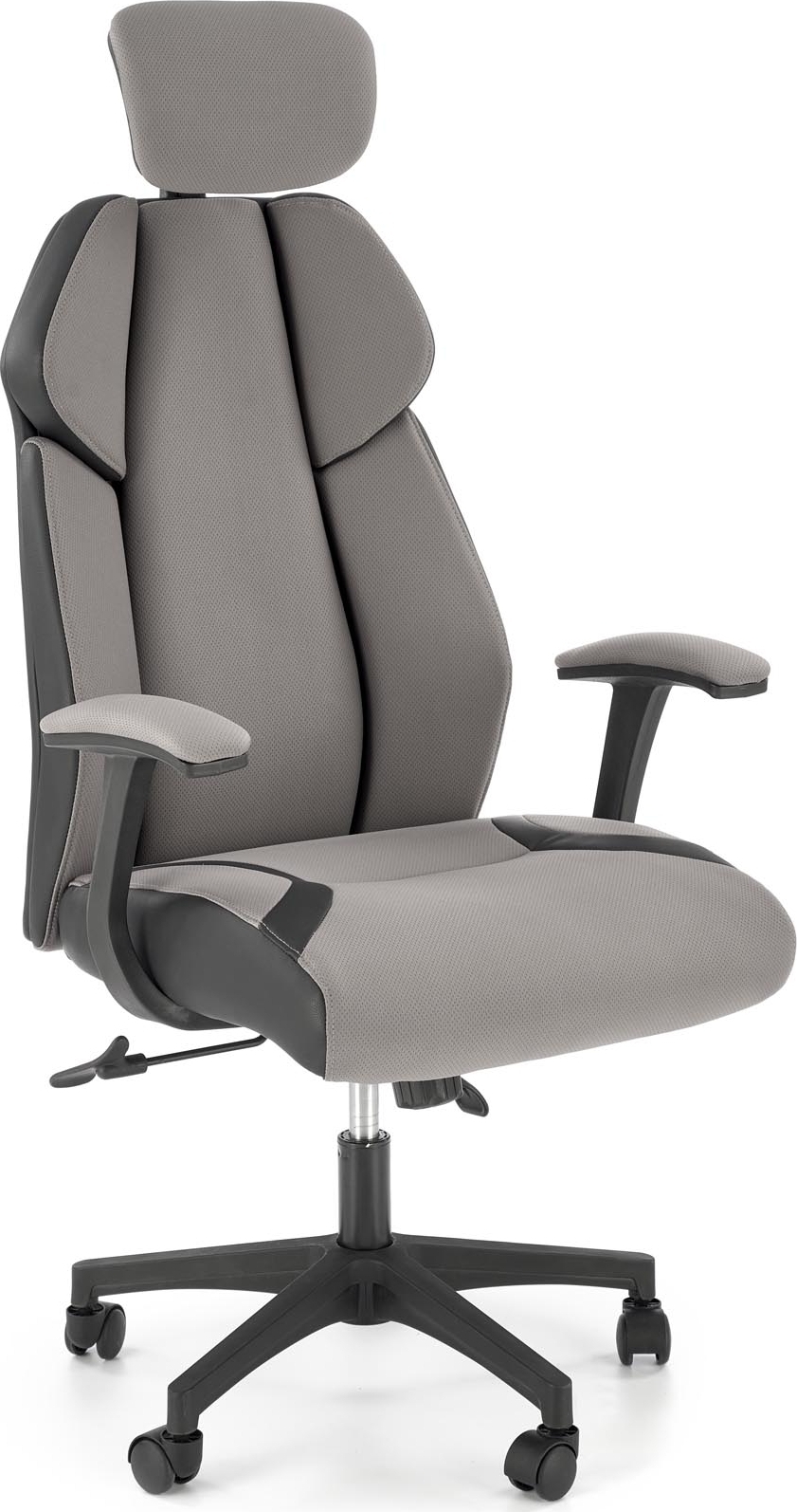 Kontorsstol med underrede av polypropen(PP). Klädsel av ekoläder och tyg.