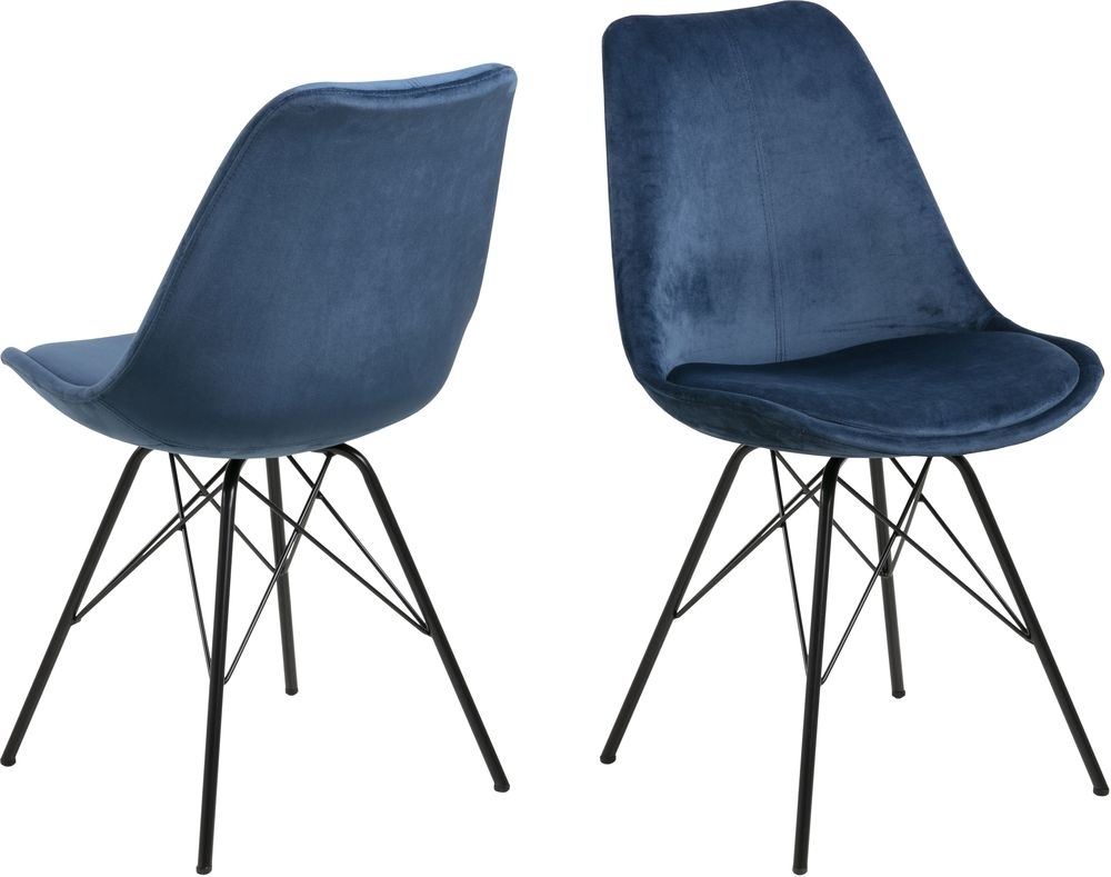 Matstol med underrede tillverkat av svart pulverlackerad metall och sitsen är klädd med ett mycket behagligt sammet tyg för maximal komfort.