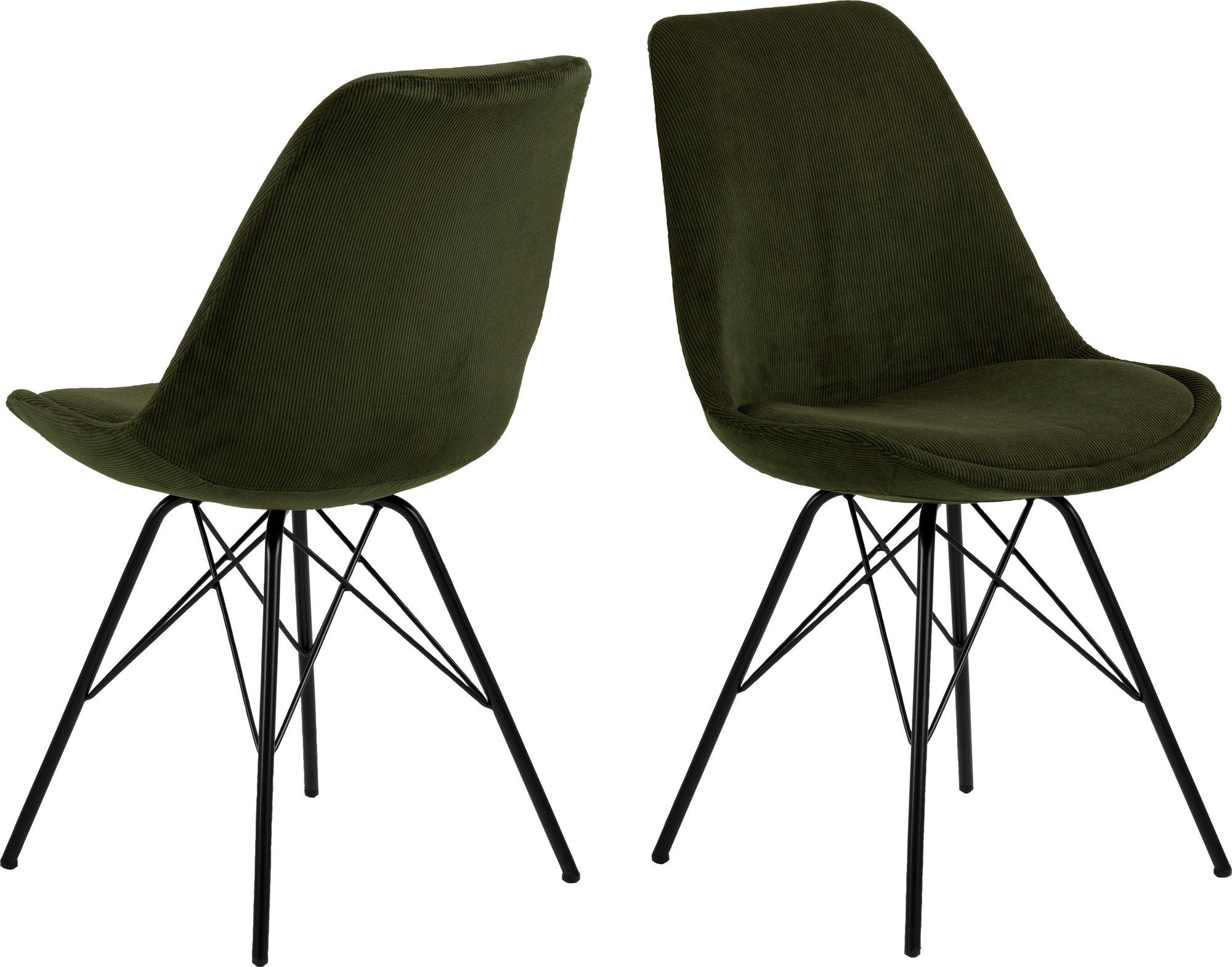 Matstol med ben av pulverlackerad metall och klädsel av polyester och polyamid.