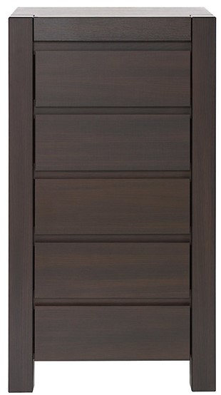 En byrå från den moderna möbelserien Ernst i mörk wenge. Byrån har 5 lådor med intrigerade handtag och är mycket rymlig.