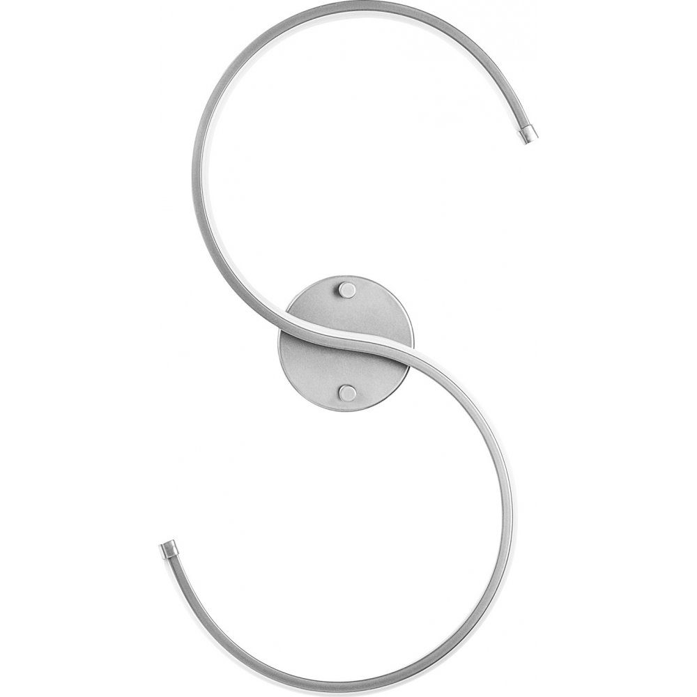 Vägglampa av metall som pulverlackerats i kromfärg. Ljuskällan består av ytmonterad LED-belysning som lyser med ett varmvitt ljus (3000 K).