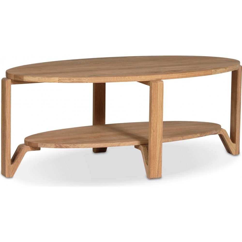Soffbord från Skånska Möbelhuset i massiv oljad ek. Bordet har en oval form och passar in i de flesta hem.