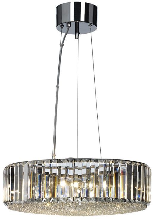En härlig taklampa med ett elegant utförande. Tillverkad i kromad metall och med vackra K9 kristallprismor.
