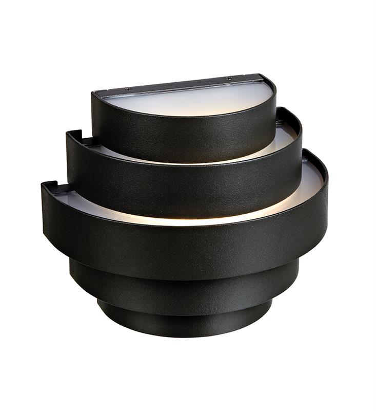 Vägglampa Etage för utomhusbruk. Modern design, tillverkad i svartlackerad aluminium och frostad ljuskåpa. IP-klassen är IP44 avsedd för fast installation. LED 3W. 3000K varmvitt ljus. 360 lm. 54,5° spridningsvinkel. Energiklass A. Ej dimbar. Monteras direkt på väggyta, passar perfekt på exempelvis husväggar eller garage.