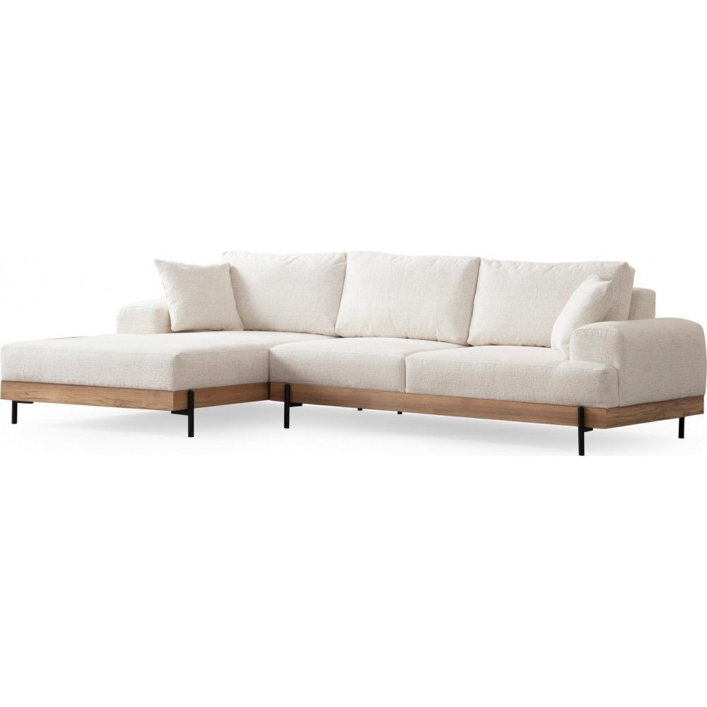 Soffa av bokträ och spånskiva med klädsel av polyester. Ben av metall. Fasta sittdynor och portabla ryggdynor. Tyg går att kemtvätta.