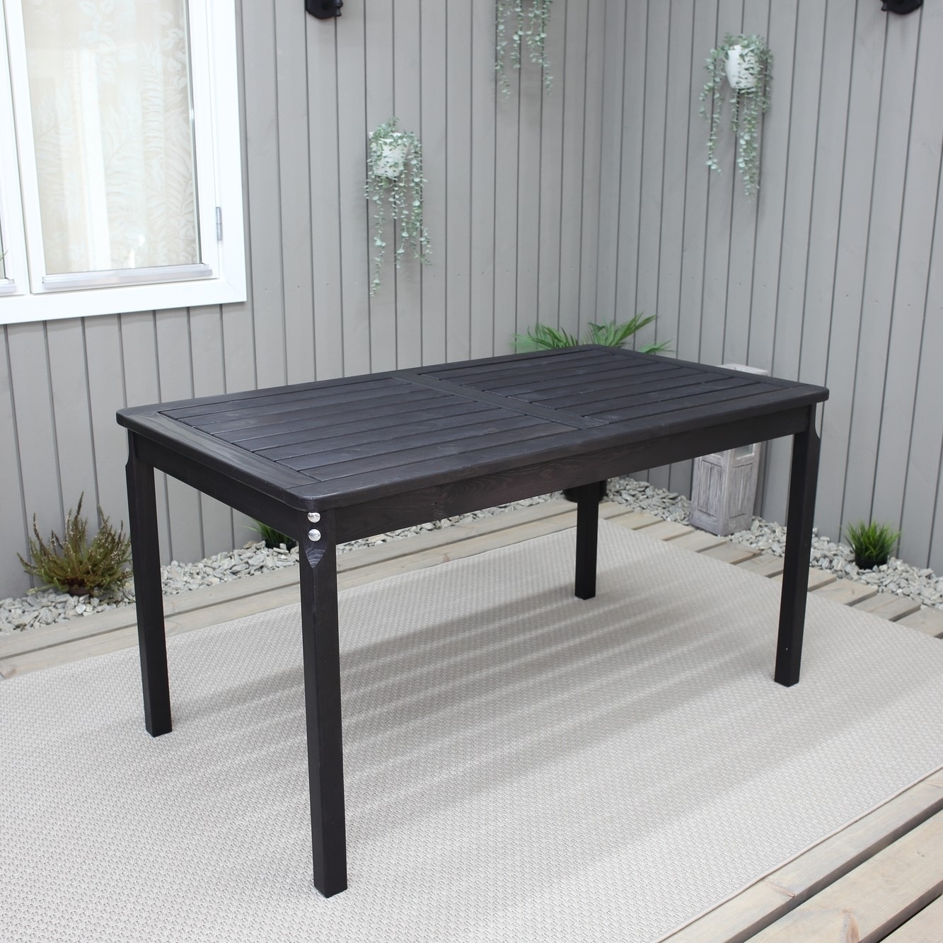Matbord från Skånska Möbelhuset i klassiskt utförande. Robust i svartmålad furu, passar bra in på de flesta uteplatser och terrasser.
