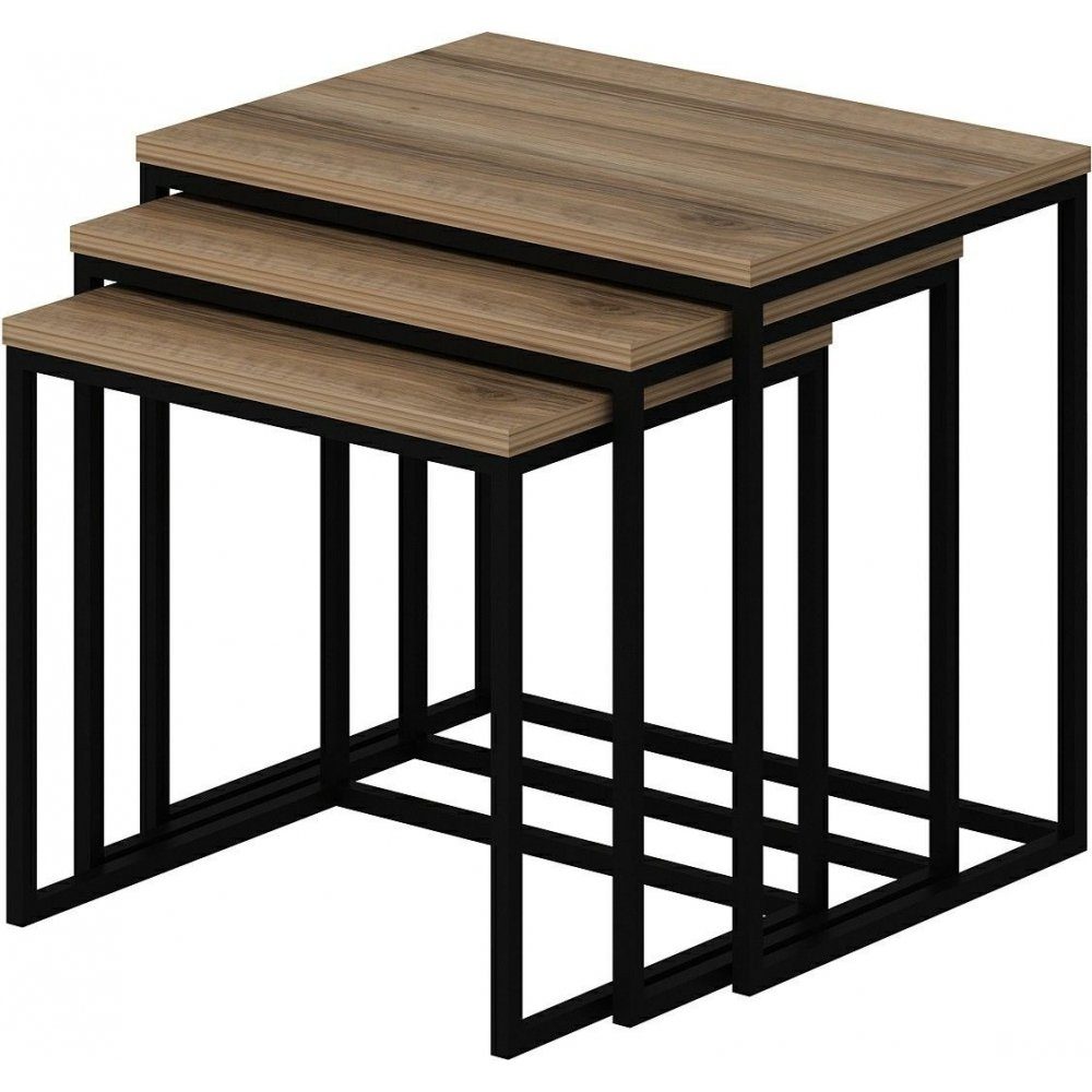 Satsbord av trä med ben av metall. 3 st.