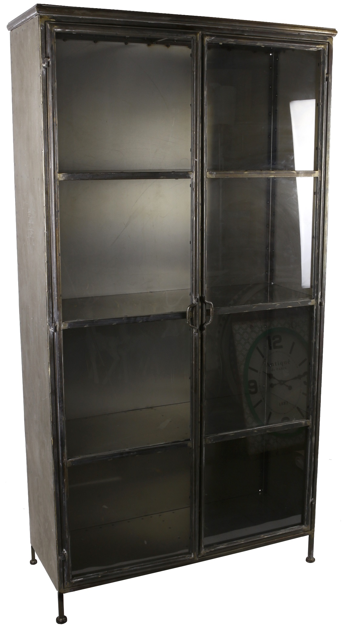 Stort och rymligt vitrinskåp i svartgrå metall. Skåpen kan variera i färgnyans då varje skåp är unikt.