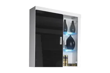 Tessan Vitrinskåp 45x32x117 cm, Svart/Vit Led-Belysning