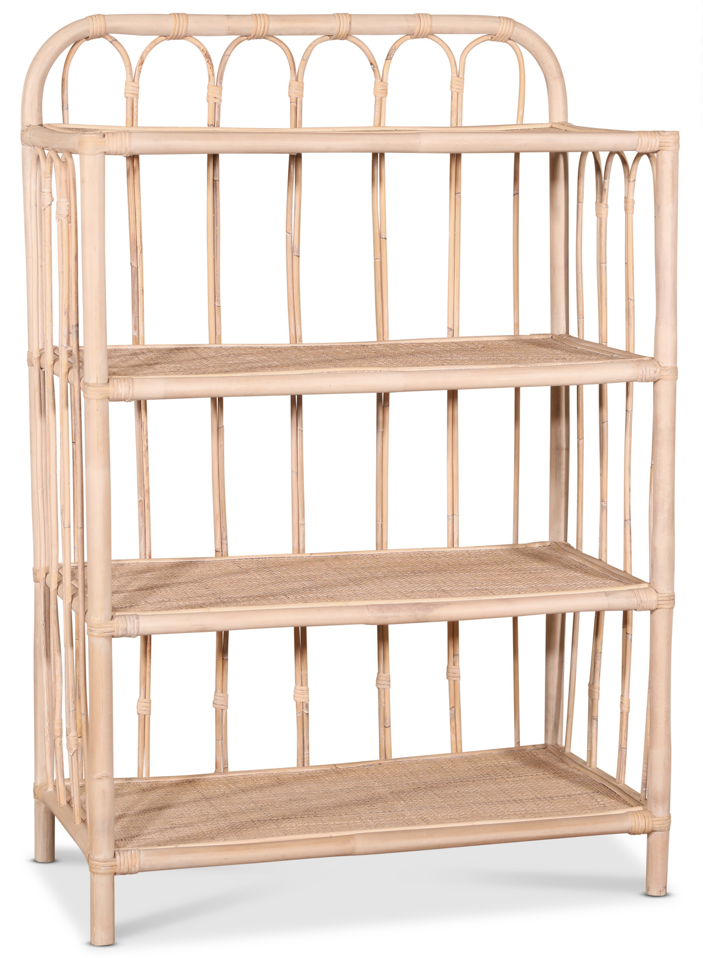 Bokhylla i slitstark och hållbar rotting, färgad i whitewash. Bokhyllan är låg, vilket gör den lättplacerad. Rotting är ett lätt material vilket gör bokhyllan enkel att förflytta.