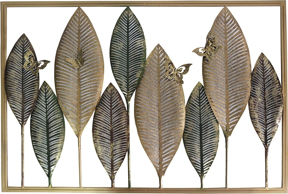 Väggprydnad metall av blad och fjärilar, perfekt för upphängning på väggen.