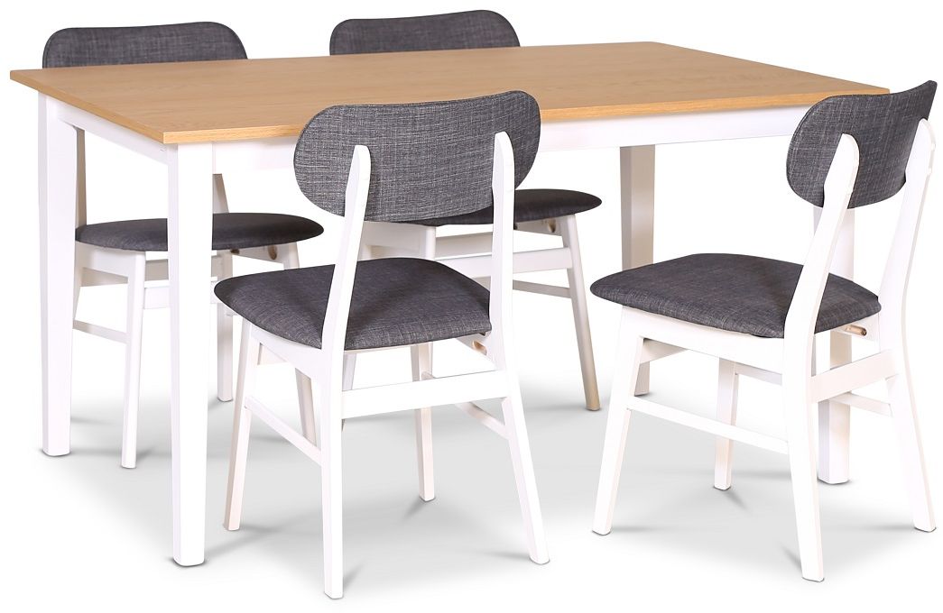 Fårö matgrupp 140 cm inkl. 4 st Sarek grå matstolar - Ek/vit