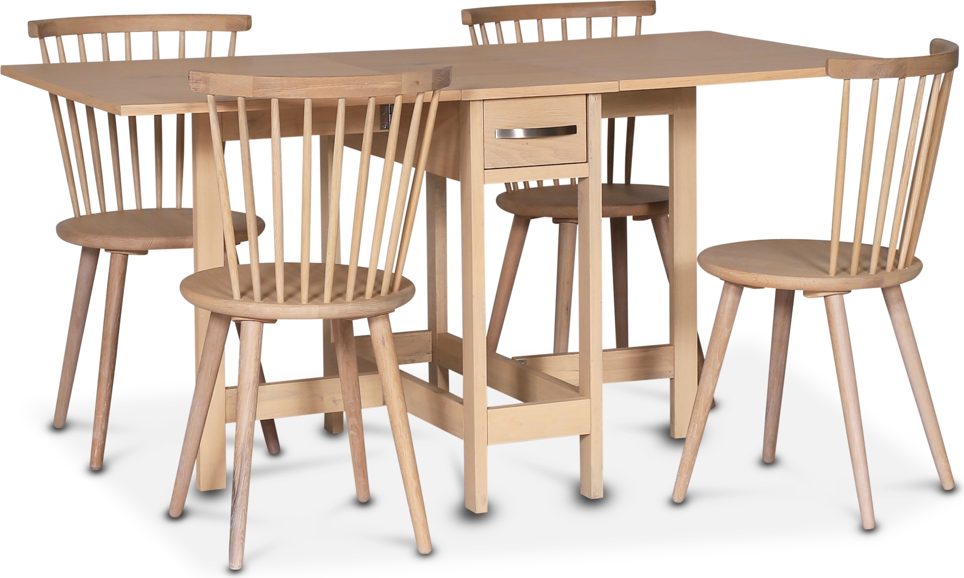 Fårö matgrupp i klassiskt utförande. Fårö klaffbord med 4 st matchande Castor pinnstolar i whitewash.
