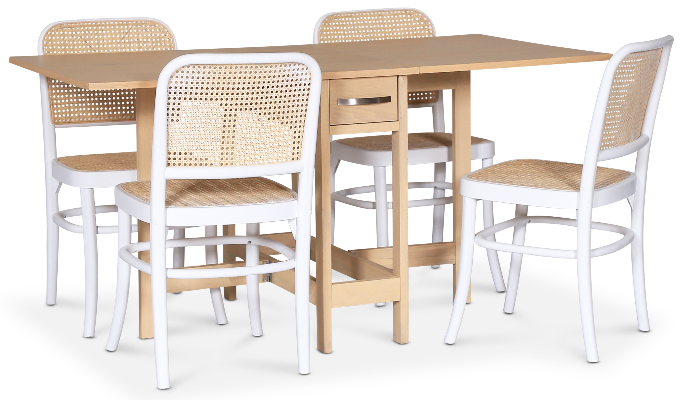 Fårö matgrupp; Fårö klaffbord i Whitewash med 4 st Tyko stolar i böjträ