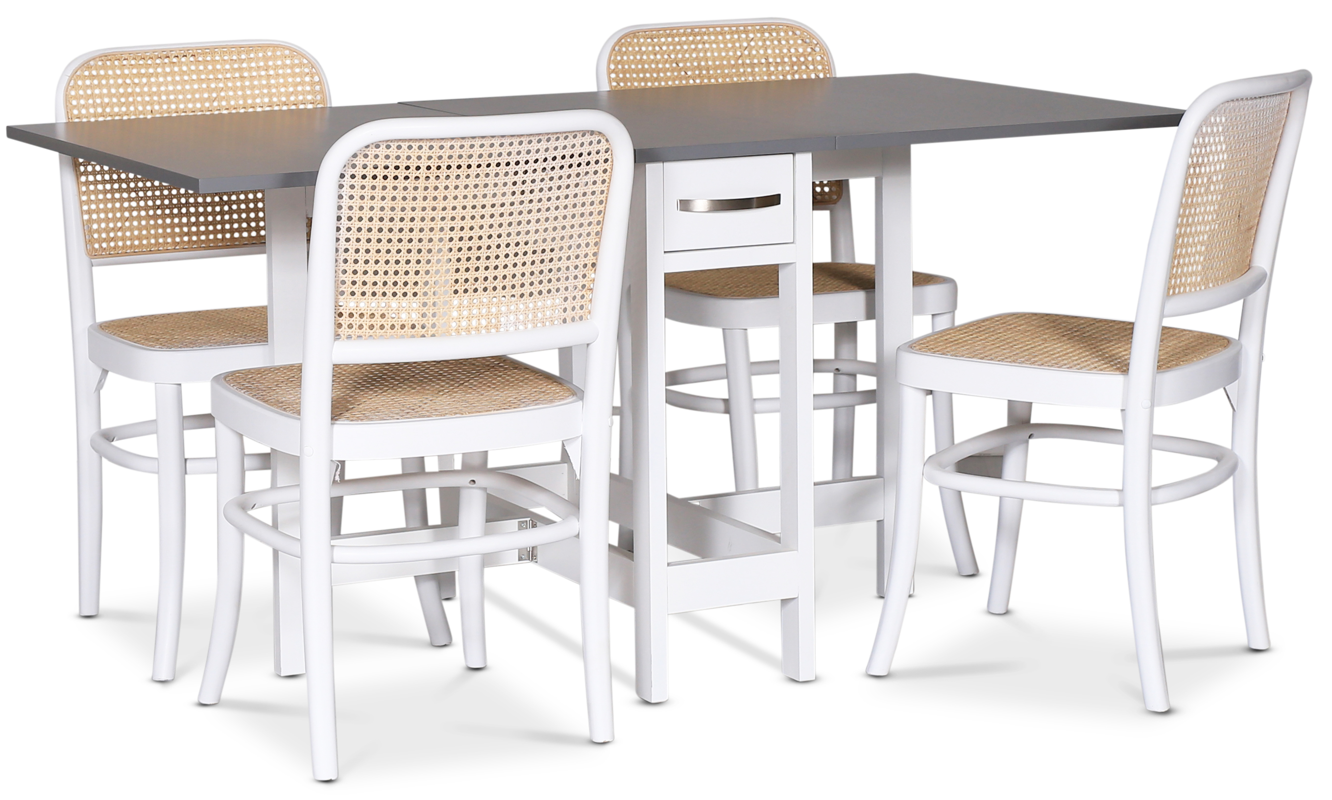 Fårö matgrupp; Fårö klaffbord Vit / Grå med 4 st Tyko matstolar
