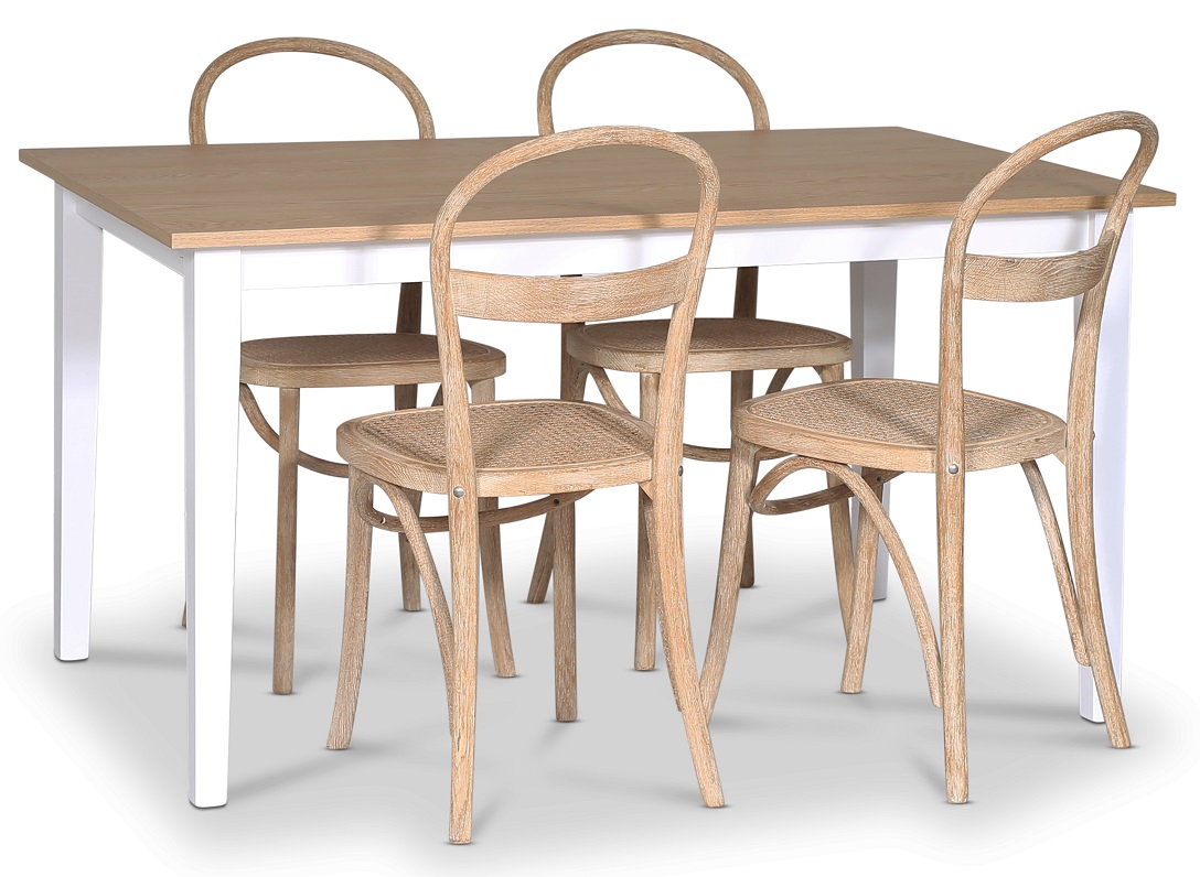 Fårö matgrupp; matbord 140x90 cm - Vit / oljad ek med 4 st Danderyd No.16 stolar Whitewash