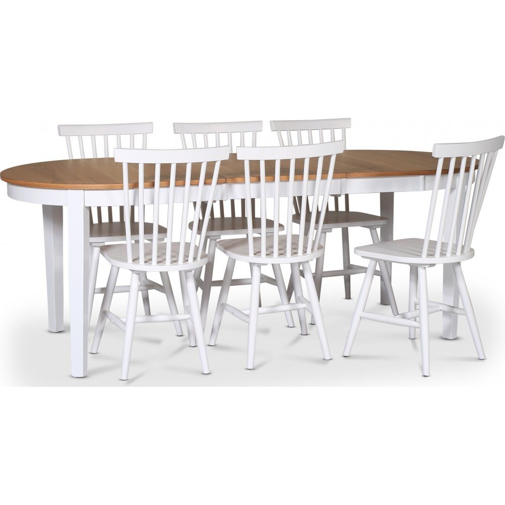 - Fårö matgrupp; matbord 160/210x90 cm - Vit / oljad ek med 6 st vita Karl pinnstolar