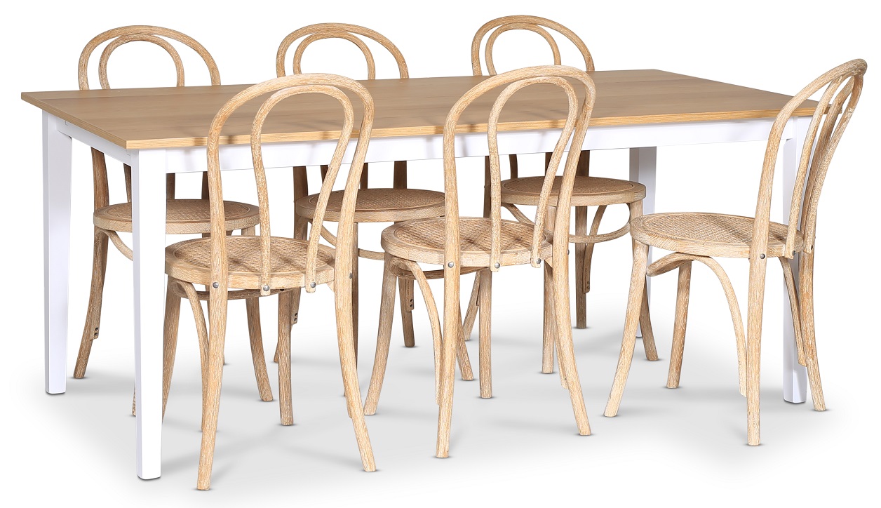 Fårö matgrupp; matbord 180x90 cm - Vit / oljad ek med 6 st Danderyd No.18 stolar Whitewash