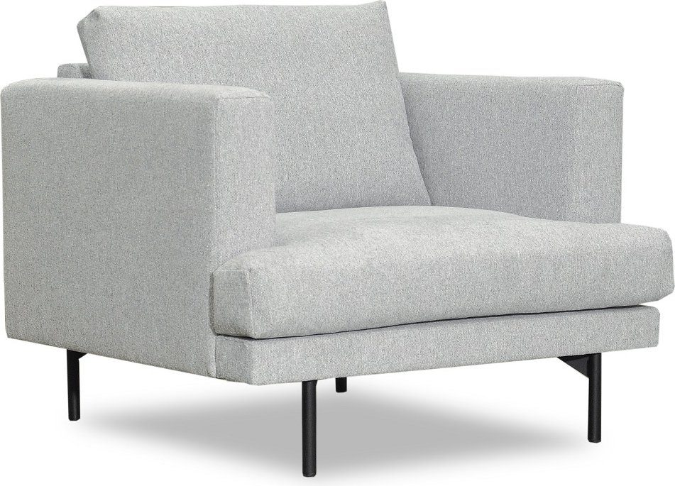 Smilla är en påkostad möbelserie med en stabil och rejäl stomme för att ge möbeln en lång livslängd. Stoppningen i sittdynorna är uppbyggd med högkvalitativ kallskum med en bollsterfiber topp som ger en otroligt skön komfort. Fåtöljen är klädd i ett modernt ljusgrått tyg, Serta 11.