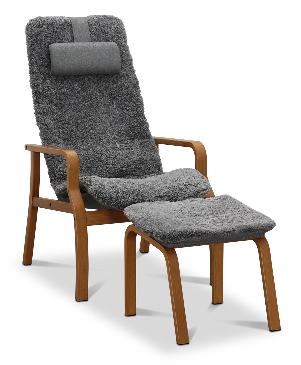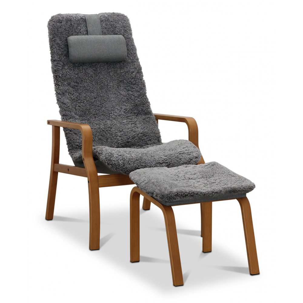 Fåtölj med fotpall fårskinn ek/grå - Frank