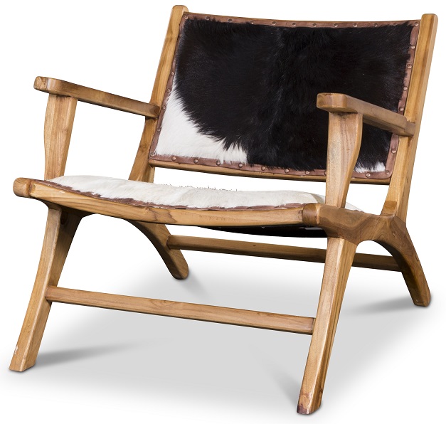 Safari fåtölj i massivt teak-trä med sits och rygg i äkta koskinn. Monterad och färdig att användas från kartong.