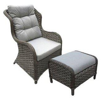 En snygg fåtölj med fotpall i modern design. Stommen är tillverkad av aluminium och är klädd med ett behagligt konstrotting.