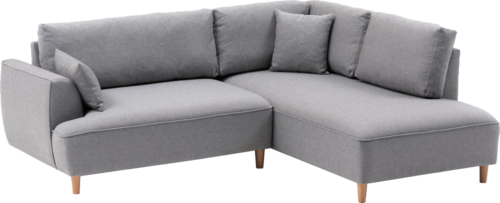 Soffa av bokträ med klädsel av polyester. Prydnadskuddar ingår.
