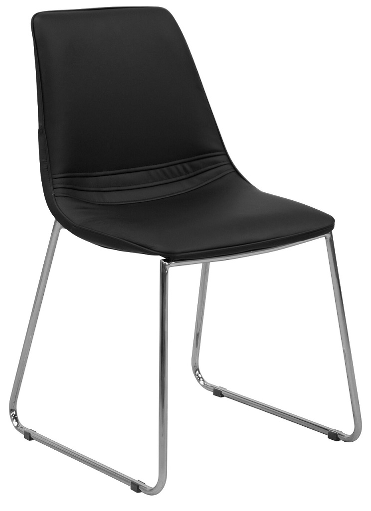 Felix matstol i modern design med kromade ben och en formad sits i svart slitsarkt och lättskött PU.