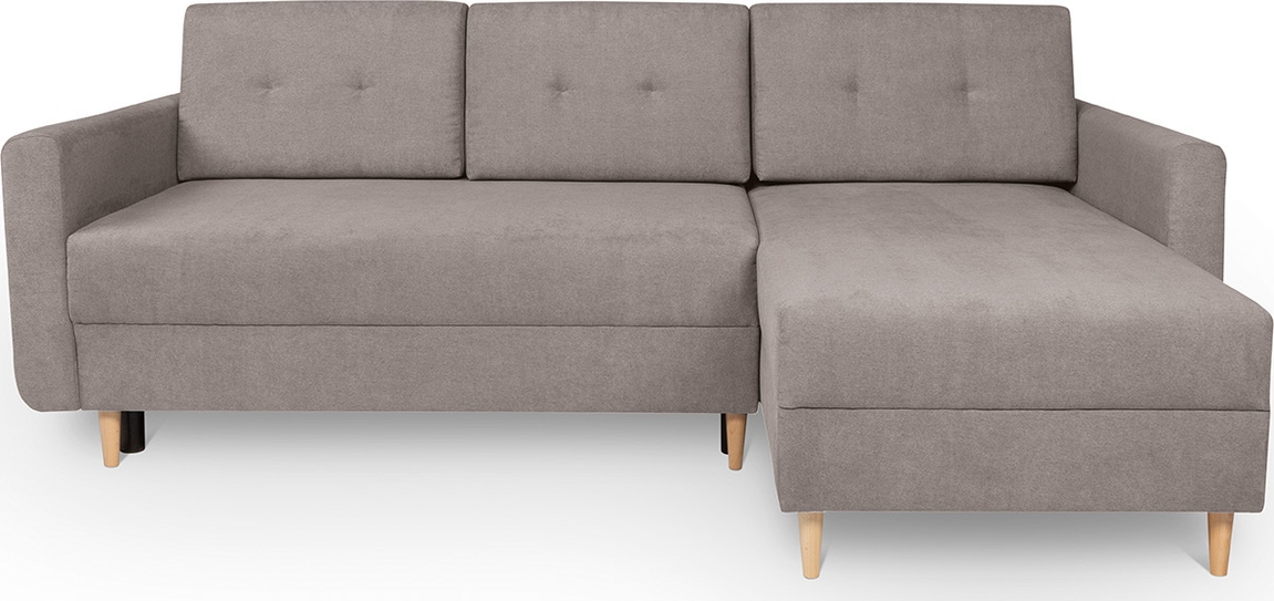 Divansoffa med bäddfunktion och förvaringsutrymme. Divanens placering väljs vid montering.