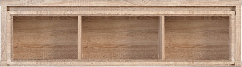 Ett fint väggskåp i ljus ek. Väggskåpet har tre fack med en front i glas som skyddar dina föremål från damm. Väggskåpet kan med fördel hängas ovanför mediabänken i samma möbelserie.