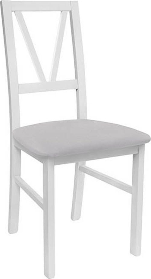 Matstol av trä med klädsel av tyg.