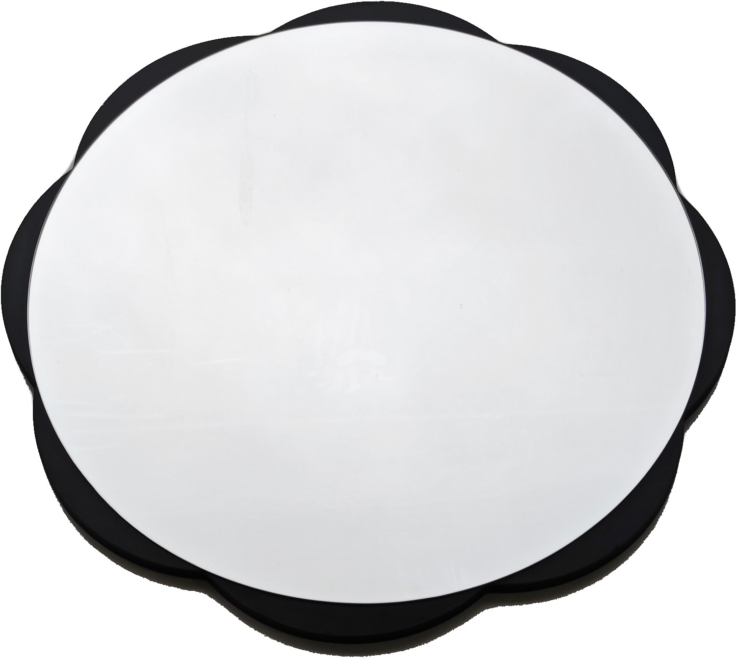 Spegel med ram av melaminbelagd spånskiva och PVC. Glas utan koppar och bly.