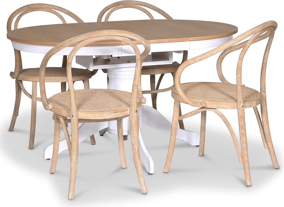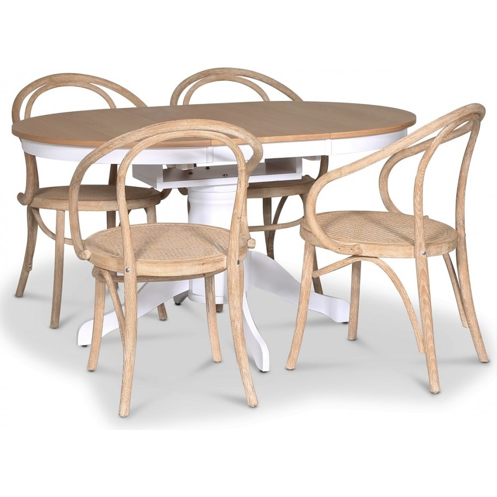 Fitchburg matgrupp; Ovalt matbord 106-141 cm - Vit / Oljad Ek med 4 st Danderyd No.30 karmstolar Whitewash