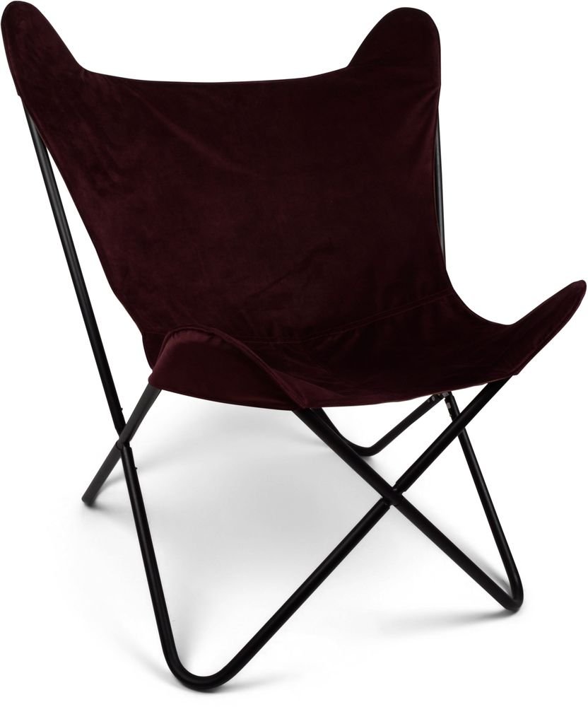 En mysig fjärilsstol med svart metall underrede och klädd med mycket behagligt sammet tyg.