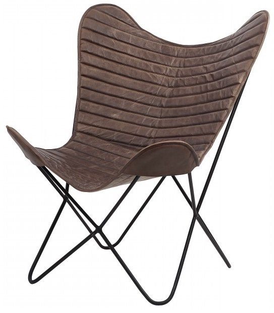 Klassisk stol som med en fladdermus-liknande design. Antikbehandlat naturläder i äkta vintage-stil! Svartlackerat underrede!