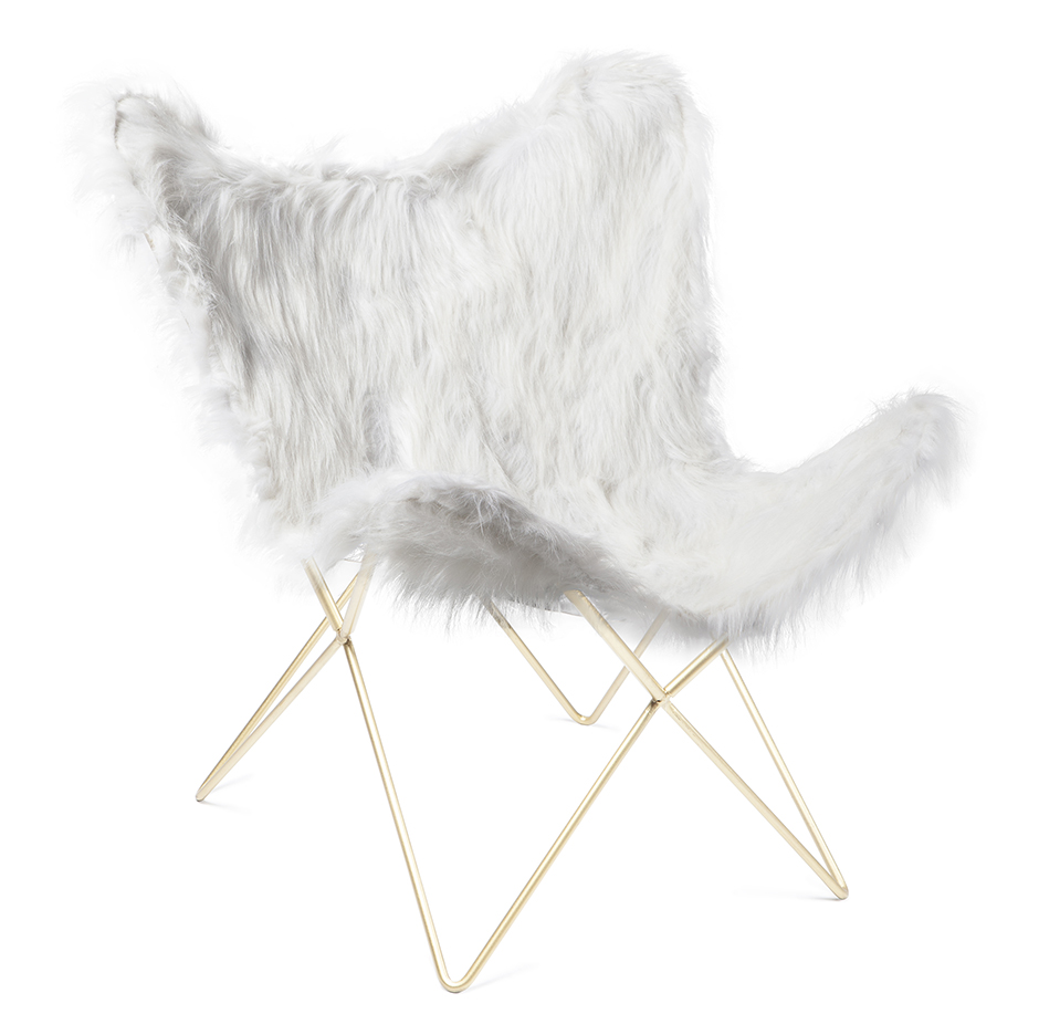 Fladdermusfåtölj Trendens - Vit fuskpäls / Mässing