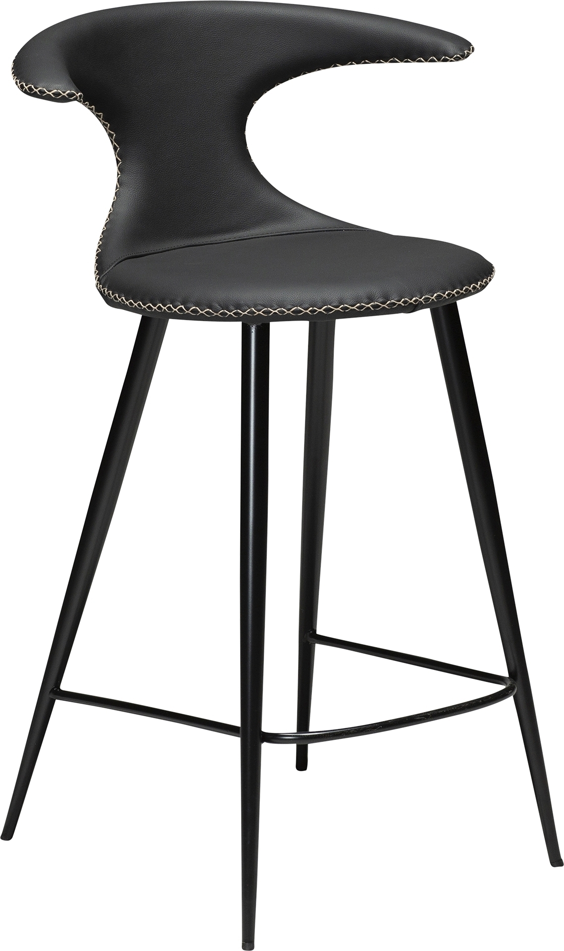 Modern och snyggt designad barstol, skapad av Sane Protin och tillverkad av danska Dan-Form. Den symboliserar allt som dansk design och formgivning är kända för. Klädd i äkta läder med snygga kontrastsömmar och ett underrede i svart pulverlackad metall.