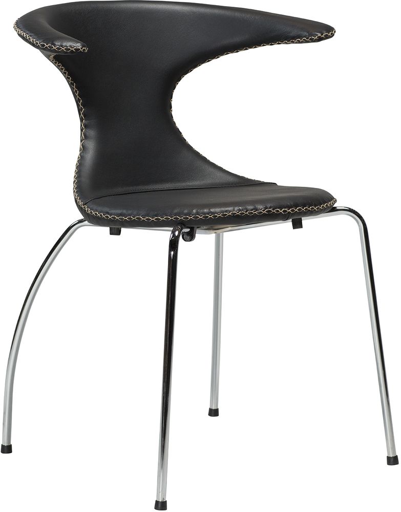 En snygg och modern stol i svart slitstarkt läder och kromade ben, format ryggstöd. En stol som sticker ut från mängden.