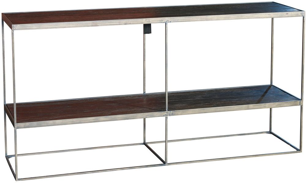 Hylla i rustik alm som passar in i en gammaldags inredning. Hyllan har 2 st hyllplan och stomme i borstad stål.