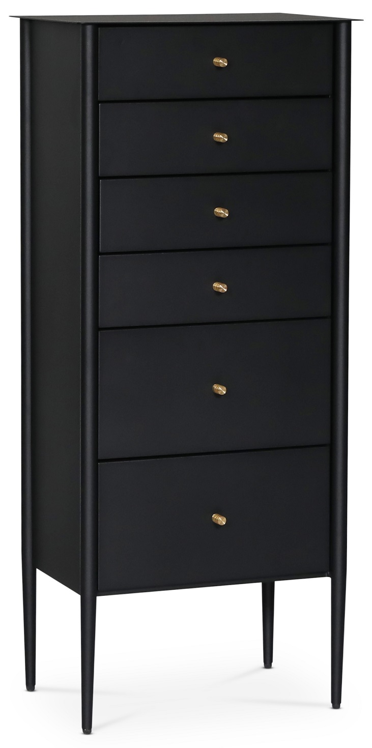Flash ger dig en serie bestående av sängbord, byrå och konsolbord i olika utförande. Tillverkade av metall i svart eller vitt med mässingsfärgade knoppar till handtag. En serie i tidsenlig design att komplettera hemmet med.
