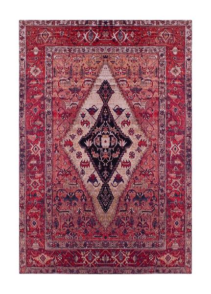 Dijon har en röd bottenfärg med medaljongmönster och bård i svarta, gula och blå toner. Eftersom mattan är tillverkad i 100% polypropylen och inte innehåller några jutetrådar, så innebär det att Dijon tål väta och därför passar lika bra inomhus som utomhus.